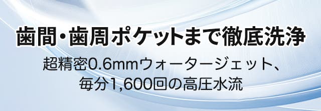 超精密0.6mmの高圧ウォータージェットが、歯と歯の間や細かなすき間の奥までしっかり到達。