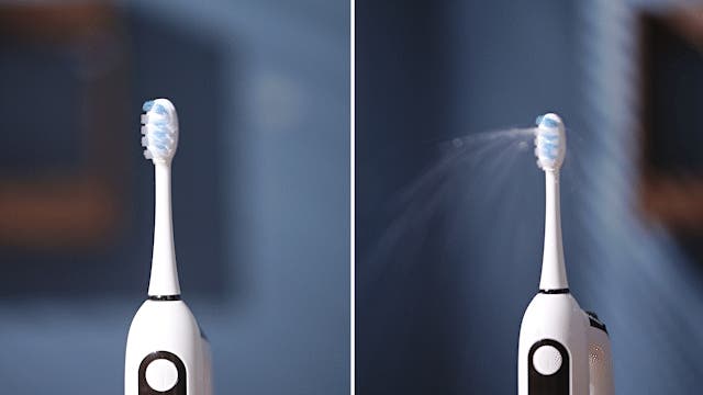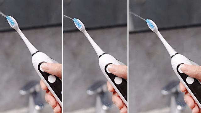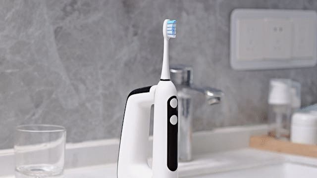 ボタンひとつで3段階の振動モードに切り替え可能な電動歯ブラシは、歯や歯茎の状態に合わせて最適なブラッシングを実現。