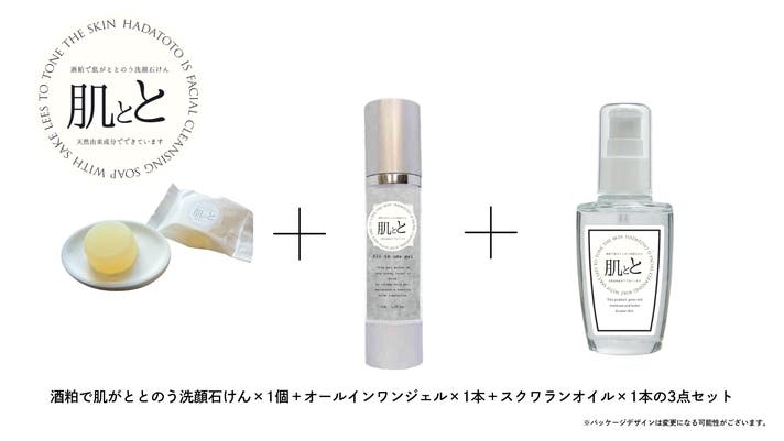 酒粕で肌がととのう洗顔石けん×1個+オールインワンジェル×1本+スクワランオイル×1本の3点セット