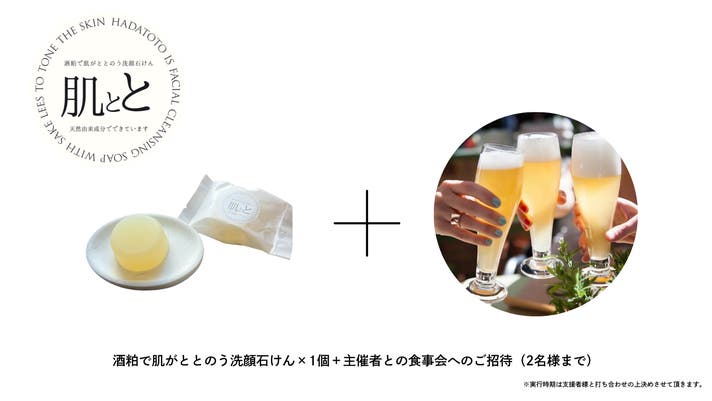 酒粕で肌がととのう洗顔石けん×1個+主催者との食事会へのご招待(2名様まで)