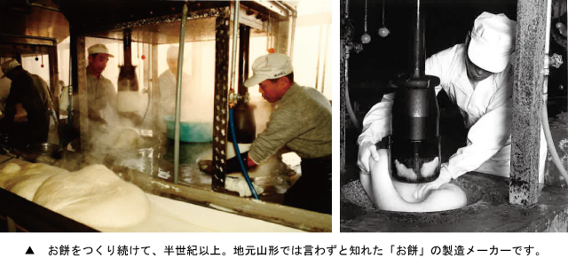 厳選したお米をもみ殻のまま仕入れ、自社で精米をしております。厳しい基準を設けて、欠けや割れのない良質なお米だけを選別できる、独自の精米技術を用いています。使用する水も、良質な蔵王山系の伏流水。こだわり抜いた精米を経て、皆さまに喜ばれるおいしい餅商品を造り上げています。