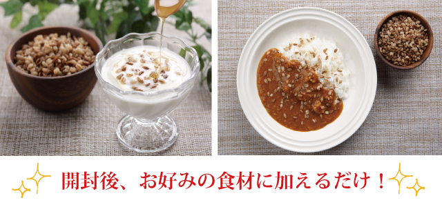 いつもの料理に「そのまま」加えるだけで、手軽に食べ応えと栄養をプラスオン。あなたの健やかな体づくりのお手伝いをします!