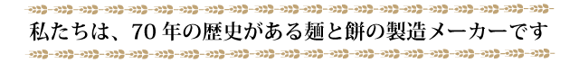 「私たちは、豊な日本の伝統食品「めん、もち」を通して、健康と、社会に貢献する企業を目指します」という企業理念のもと、多くの人々に伝統ある私たちの商品をお届けしたいという想いを持っています。