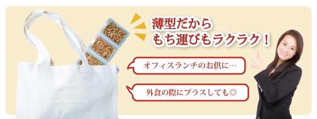 かさばらない薄型パックなので、かばんにもスッキリ収納できて持ち運びも楽にできちゃうのが嬉しい!