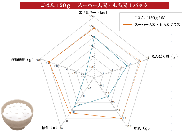 スーパー大麦×もち麦1パックを加えるだけで、下記の栄養素を摂取することができます。