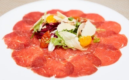 ▼和王のカルパッチョ マッシュルーム・ルッコラ・チーズを添えて