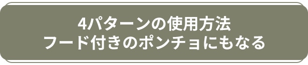 HAIKOUICHTHYSはシーンに合わせて4パターンの使い方ができます。そのままブランケットやケープとして、またはフードを出してポンチョとしてもお使いいただけます。