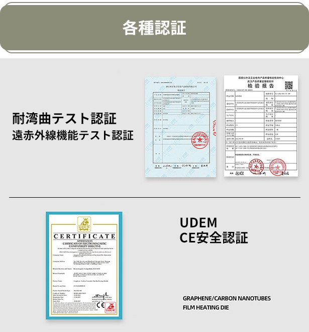 このほか、NTCスマート温度管理器によって発熱シートの熱を優しく柔均一にしますので、加熱しすぎたりすることを防ぎます。