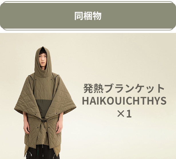 発熱ブランケットHAIKOUICHTHYSは技術性と多機能性、デザイン性、実用性、利便性を集結させて開発した商品です。様々なシーンでお使いいただけ、これまでとは違うアウトドアライフを実現します。まるで変身するように多様なパターンで着用でき、冬のレジャーがより一層楽しいものとなることでしょう。