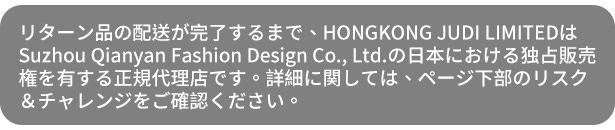 プロジェクトに関する情報 ・プロジェクトの属性:輸入商品 ・代理店によるサポート:代理店、日本語カスタマー対応、保証、保守 等 ・プロジェクト実行者(国):中国香港 ・製品者(国):中国 ・ 製造者(国):中国 ----------------------- ※並行輸入品が発生する可能性があります。正規以外での個人輸入等は、完全に防ぐことができない場合がございます旨、予めご了承のほどお願いいたします。 ※並行輸入品は正規代理店による製品保証を受けることができません。 また、正規代理店を通じて購入することで、日本国内での流通に必要な各種認証の取得や、関税の適切な処理が担保されます。 ※リターン品の配送が完了するまで、HONGKONG JUDI LIMITEDは Suzhou Qianyan Fashion Design Co., Ltd.の日本における独占販売権を有する正規代理店です。 ※本文中に記載させていただいたスケジュールは、あくまでプロジェクト公開時点の予定です。応援購入の性質上、配送遅延のおそれがございます。 ※原則として、配送遅延に伴う応援購入のキャンセルはできませんが、リターン配送予定月から6ヵ月を超えた場合には、希望者に限りキャンセルにて対応させていただきます。