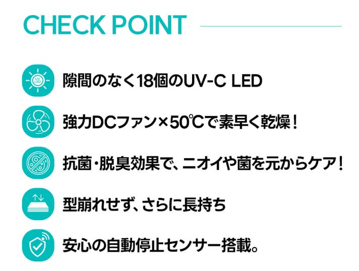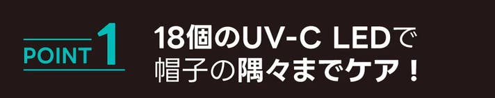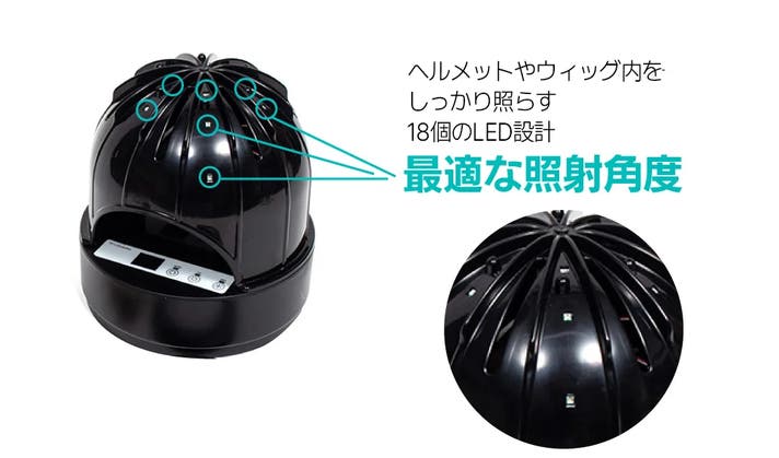- 18個のUV-C LEDで、ヘルメット・ウィッグ・帽子を隅々まで徹底抗菌!