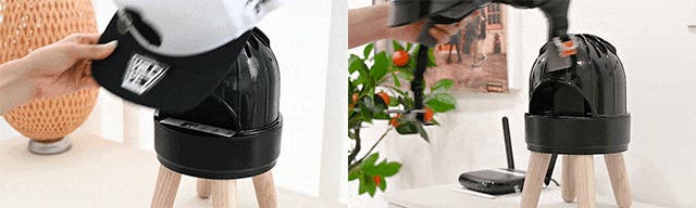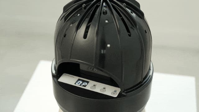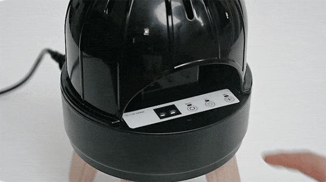 新モデルはセンサーによって作動し、帽子やヘルメットを本体に載せると自動で動作します。