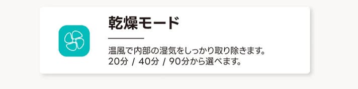- かぶせてボタンを押すだけ!DCファンで素早く乾燥・脱臭(※)・抗菌まで一気に完了!