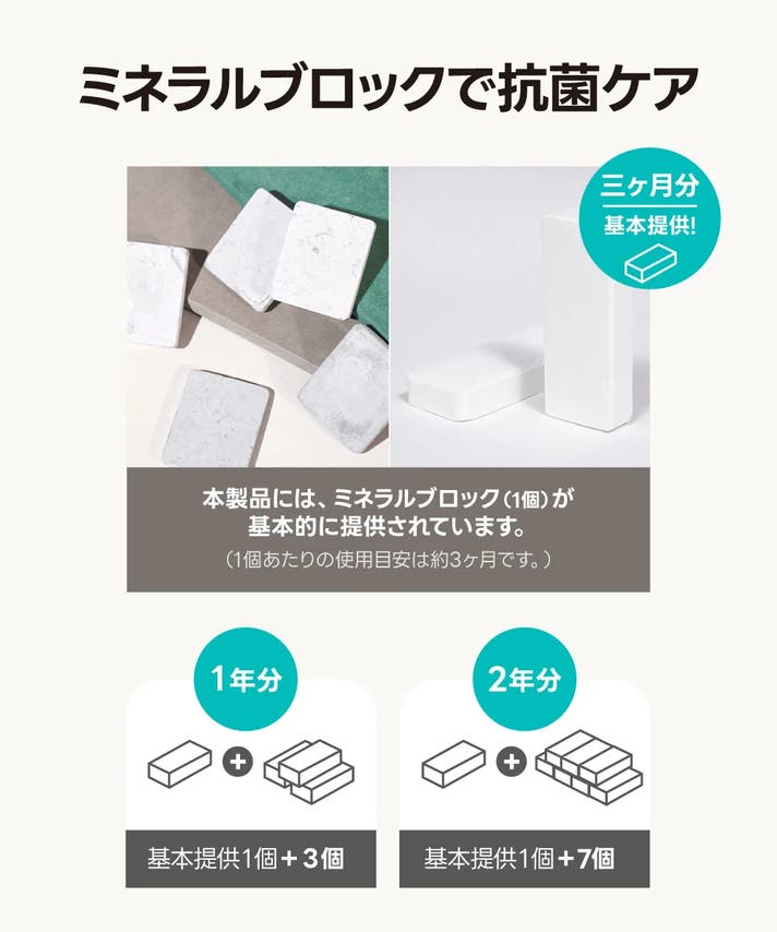 ※ミネラル脱臭ブロック1つの使用目安は約3ヶ月です。