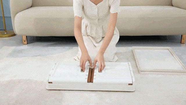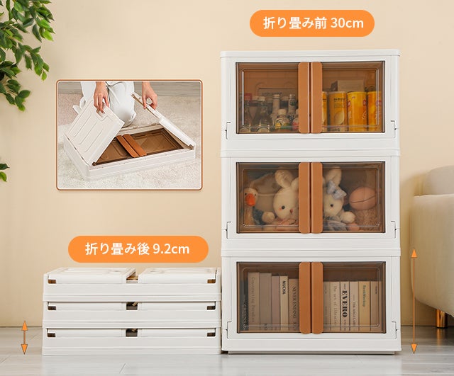 組み立てには工具や力が不要で、4つの板を展開するだけで散らかったお部屋をきれいに片付けることができます。