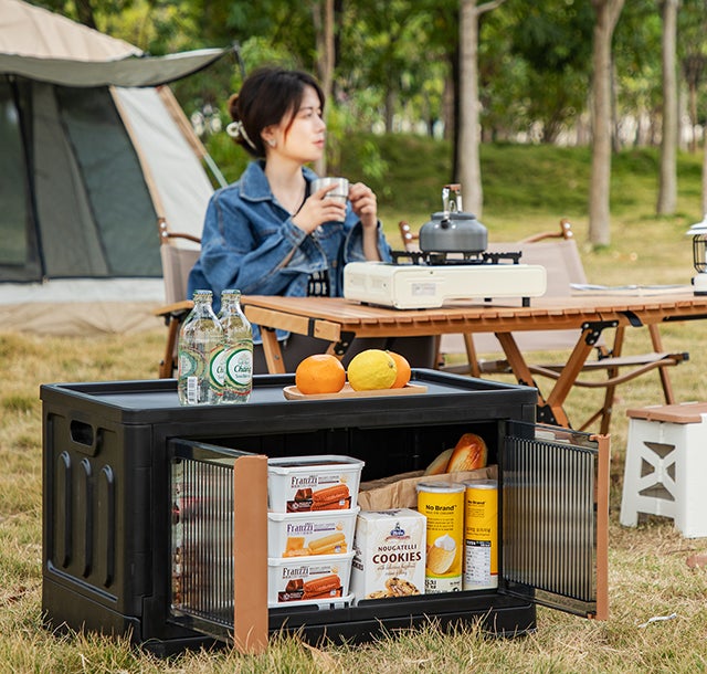 折りたたみ式収納ボックの材料には、新たにHIPS(耐衝撃性ポリスチレン)が加わりました。HIPSは割れにくく、耐衝撃性に優れ、剛性が高いなどの長所があり、アウトドアで使用しても壊れる心配がありません。