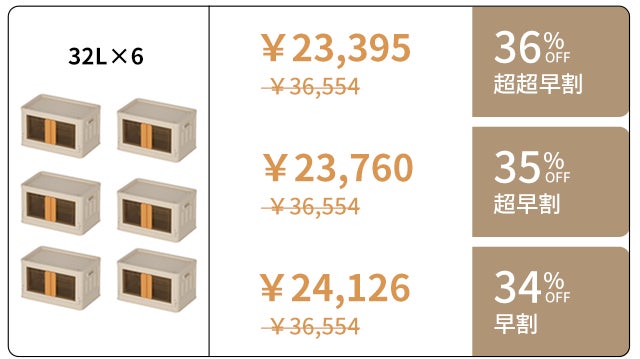 【150名様限定 超早割35%OFF】収納用ボックスHAIXIN(32L)×6