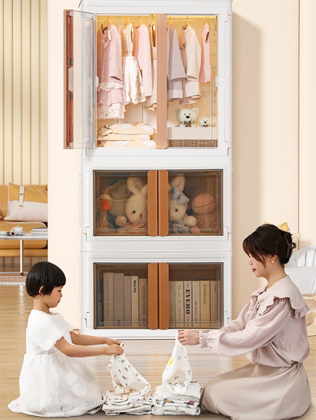 より広い収納スペースが欲しいという多くのご要望を頂きましたので、150Lの大容量収納ケースを今回Makuekeのみで限定販売をいたします!高さは73cmにもなり、子供の服はかけたまま収納することができます!