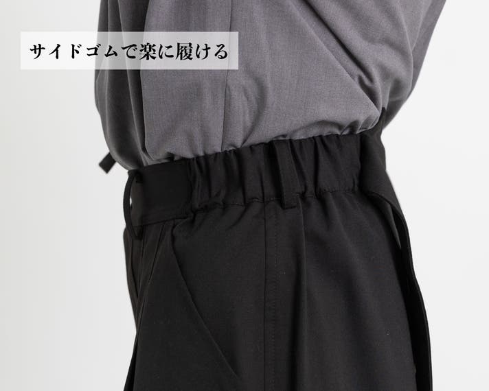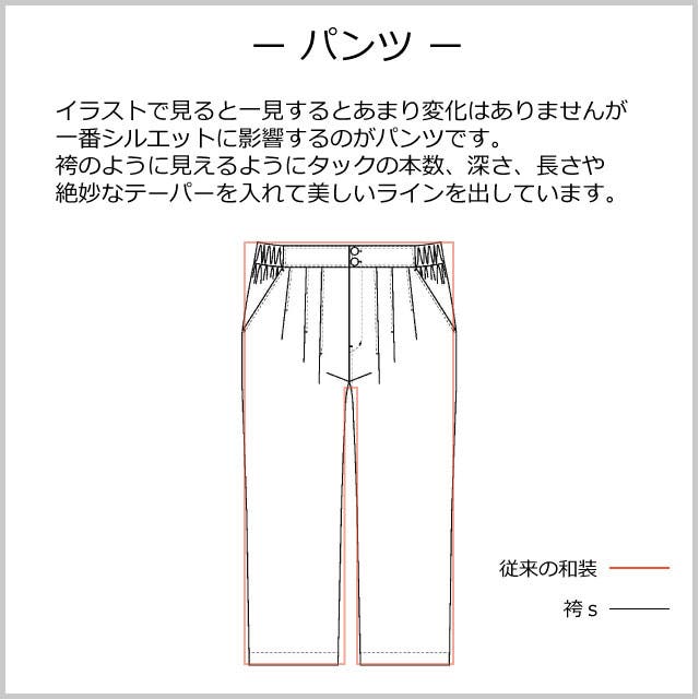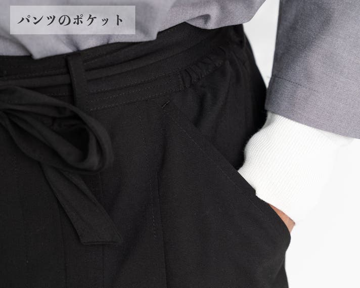 袴の伝統的ディテールを残しつつ、歩きやすい立体裁断で現代的にアップデート。