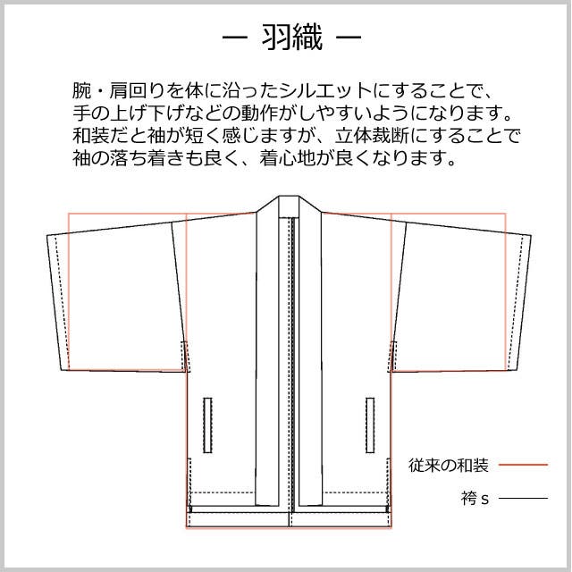 ※和装ベースのため、洋服よりゆとりのある設計です。