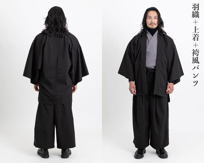 羽織・上着・袴風パンツの3点セットで、着こなしは5通りあります。