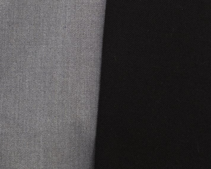 ウール特有の上品な質感を持ちながら、ポリエステルとの交織でシワになりにくく、ストレッチ性に優れた仕上がりです。