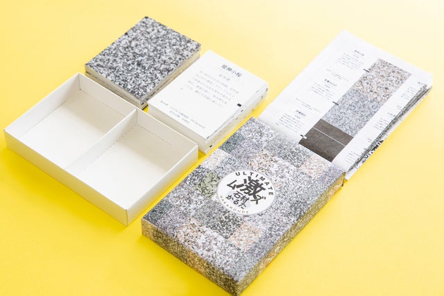 ルールは簡単、だけど震えるほど難しい!取り札は石の写真のみで、文字情報は一切ありません。 読み札には石の名前、産地、特徴、物性データを記載しており、かるたで遊ぶうちに石材の魅力について知ることができるようになっています。