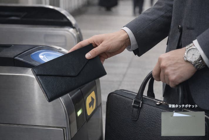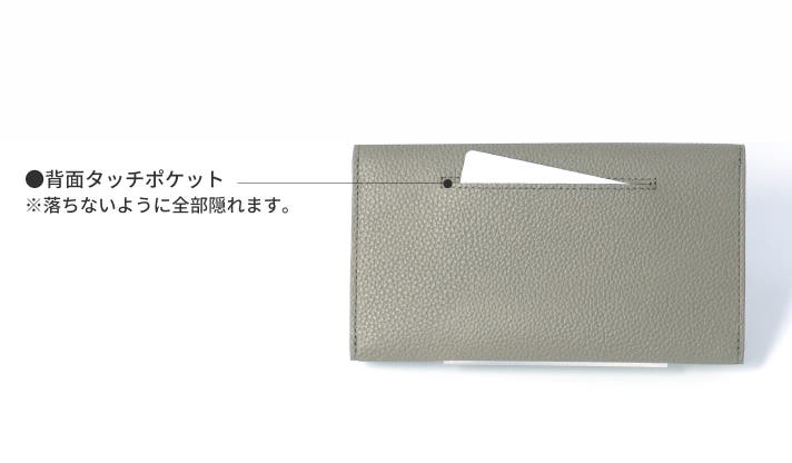 落ちないように、カードが全部隠れるように、背面タッチポケットを設計。