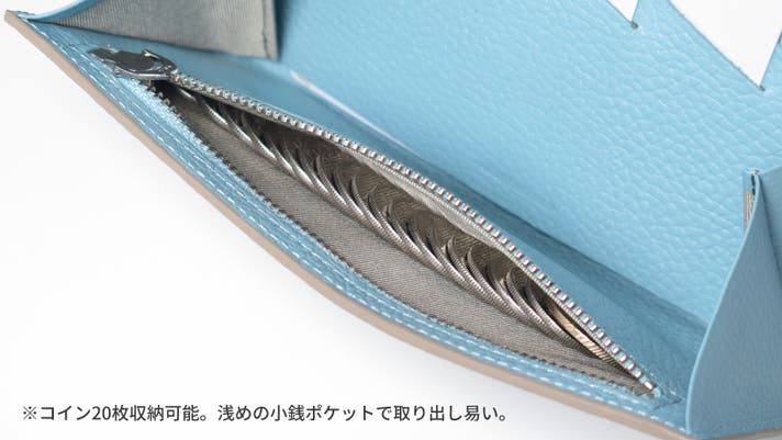 ●浅型小銭入れ。浅めのポケットで取り出しやすい。(小銭20枚程度)