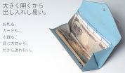 - 紙幣・カード・小銭を同じ方向から出し入れできる設計。持ち替えず、向きを変えず、動作をシンプルに