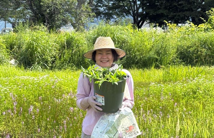 ある時、田んぼに自生している和セリの収穫を手伝っていると、佐藤さんがある葉っぱを指さして