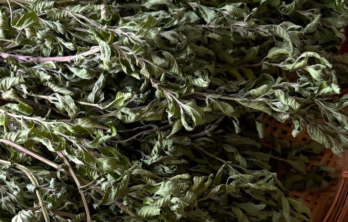 - 自然の恵みの贈り物。1本ずつ収穫してゆっくり自然乾燥し、葉を1枚1枚丁寧に選り分けしています