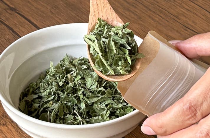 約1g(1袋の約3分の1)の和ハッカ茶をティーポットに入れます。