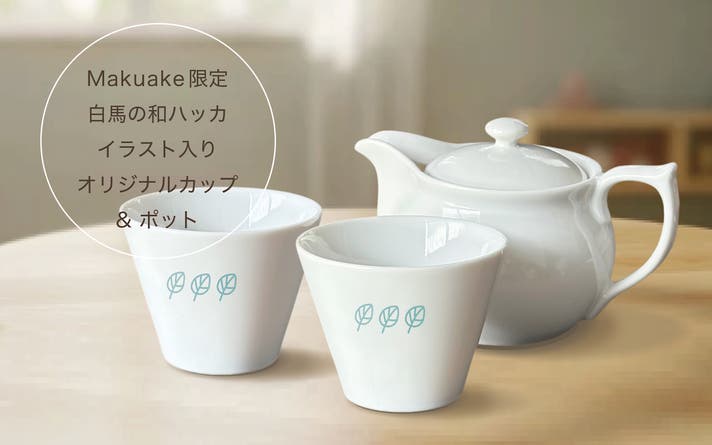 【マク割】白馬の和ハッカ茶・1セット + オリジナルカップ2個 + ティーポット