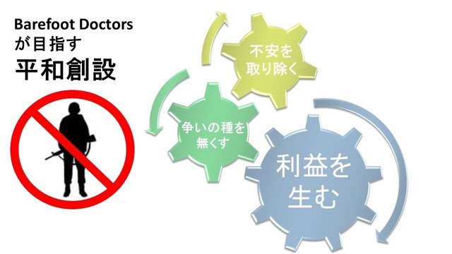 この計画の立案者である私、「林健太郎」が医師として初めて人道援助に関わった国が「ミャンマー」でした。タイ国境地域紛争地帯での困難を絶する医療活動を経験した私は、その後「ナイジェリア・イラク・スリランカ」等での経験を経て、様々な職種・専門・特技を持つ人が、苦しんでいる人の元に「己の足」で直接赴き、人道援助・自立支援を行う団体、「Barefoot Doctors」を立ち上げました。