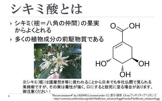 しかし、タミフルはいきなり「八角」から抽出されるわけではありません。「八角」をコーヒーのように挽き、エスプレッソを作る要領で抽出される「シキミ酸」から化学合成されます。