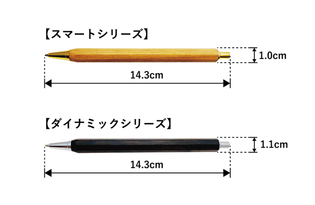 スリムなフォルムが好みの方にも、ボリュームのあるフォルムが好みの方にも似合うように、太さの異なる2シリーズで8種類の八角PENを用意しました。