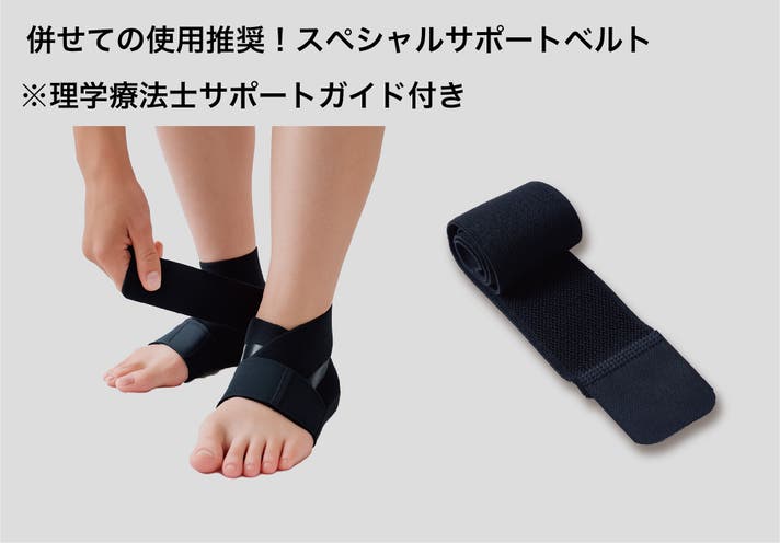 今回Makuakeでリリースキャンペーンとしまして、はくインソールと一緒に使う事ができるスペシャルアイテムもご用意致しました!足首のブレを抑え、理想の歩き方へ導いてくれる特別なサポートベルトとなっております。横アーチをがっちり強化してくれるので、足裏の弾力が発揮しやすく、長く歩いても負担が感じにくくなります。
