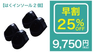 早割 25% OFF はくインソール2個+専用サポーター2個付