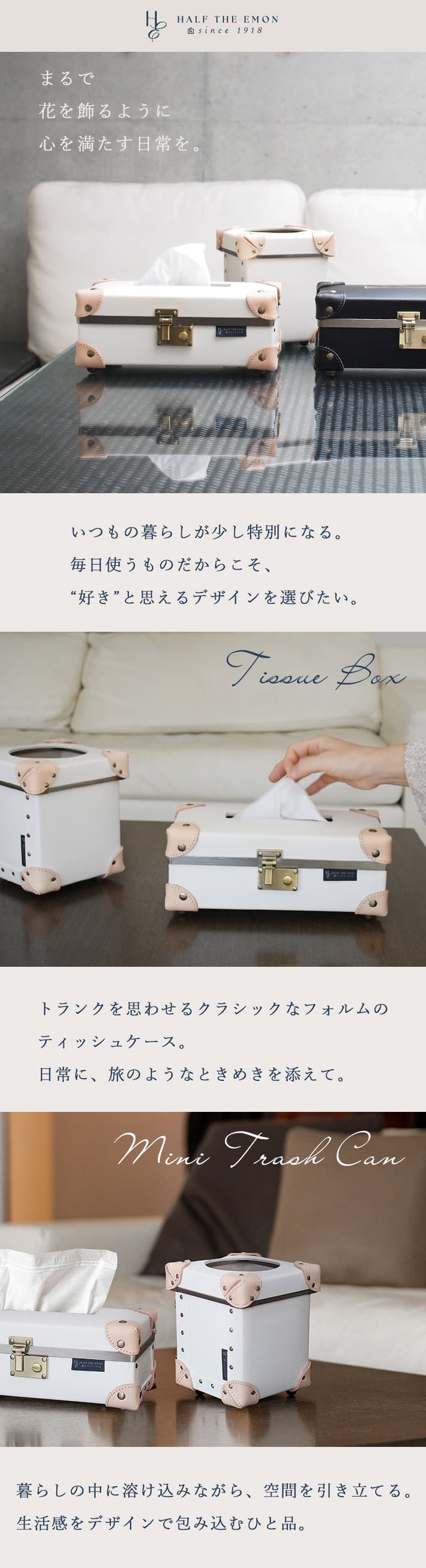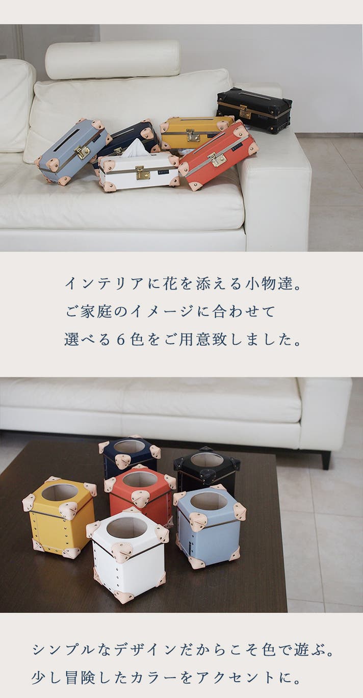 トランクキャリーデザインのこのティシュケースとMINIダストBOXは、