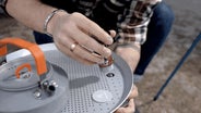 もちろん、単なる焚き火台ではありません。はめ込み式の天板を取り付けることで、シェラカップでお湯を沸かしたり、フライパンなどで簡単な調理もできます。