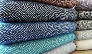 トルコに古くから伝わるキリムパターンの1つ「ダイヤモンド」とストライプ柄を織り込んだ柔らかなコットンスロー。ボリュームのある大きさなので、マルチカバーとしてもお使いいただけます。リビングにも馴染むカラーをご用意しました。快適で滑らかな肌触りで、ココロまで包み込まれるようなひとときを。