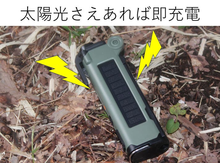 使用時に充電が切れてしまった場合もソーラーパネルが付いている為、太陽光の下に製品を置くだけで充電が開始されます。