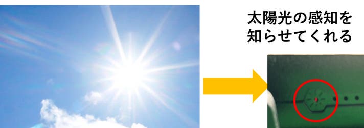 製品自体が太陽光を認識しているのかが分かる光源覚知ランプを搭載しています。