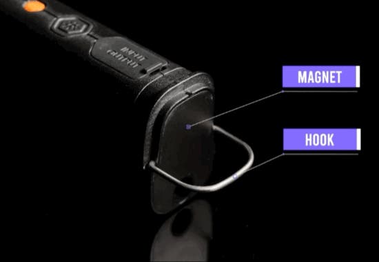 製品底部にはマグネットとフックが付いており、これにより両手で自由に作業が出来ます。