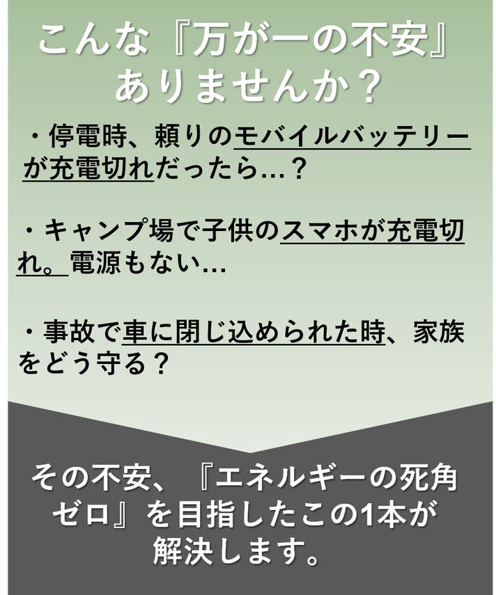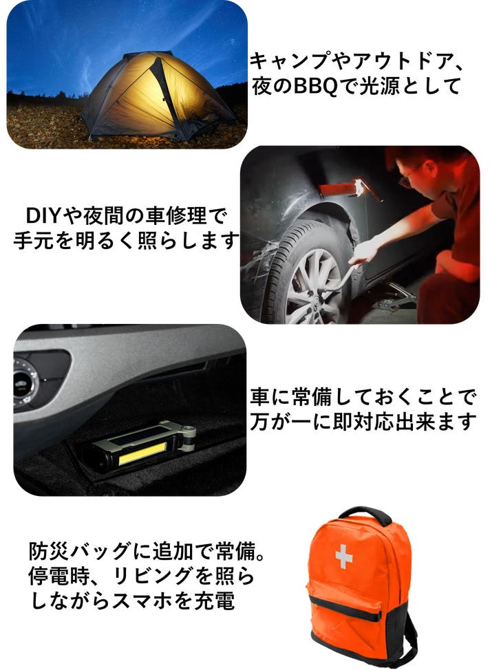 シーンを選ばず大いに活躍する製品で、照明や充電としての機能だけでなく緊急時にも皆様に安心をお届け出来ると考えております。