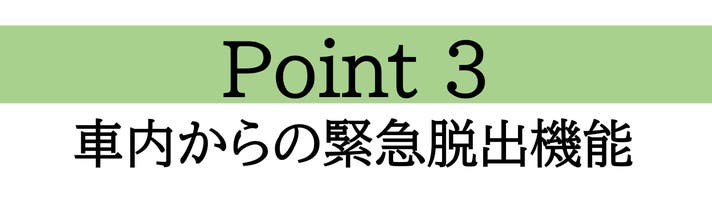緊急時車内に閉じ込められた際の脱出機能を備えております。
