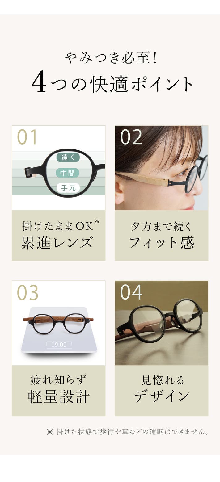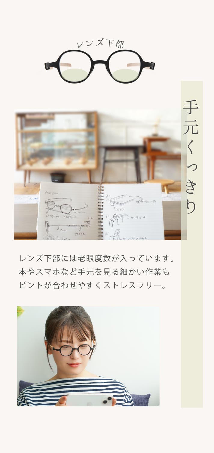 それらのお悩みを、まるっと解決できるよう「素顔レベルの累進老眼鏡」を開発いたしました。
