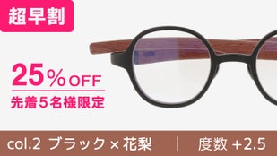 【先着5個限定】超早割25%OFF ブラック×花梨(度数+2.5)