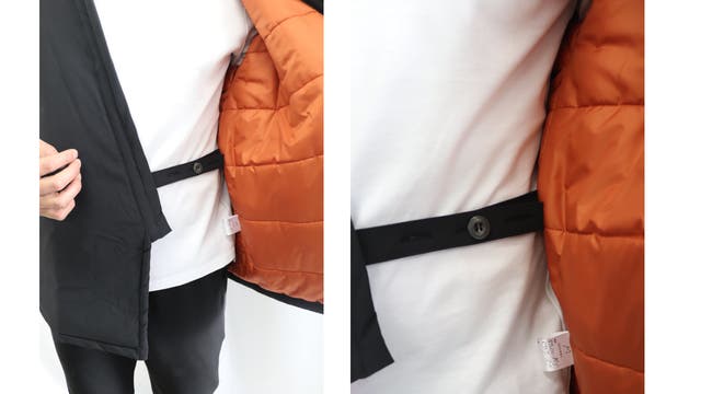 中はボタンで留めれます。3つボタンホールがありサイズ調整可能